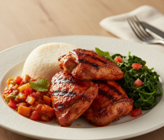 Experience global fusion at its best! Juicy chicken is marinated in our bold Fire Kiss Harissa Blend, grilled to perfection, and paired with soft Zimbabwean …